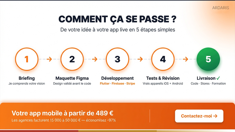 Une app dont vous serez fier — livrée dans les délais, sans mauvaise surprise.