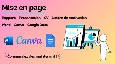 Des données à analyser ? Des rapports à mettre en page ? Des présentations à rendre professionnelles ? Je suis là pour vous aider. Voici ce que je peux faire pour vous : 📚 Analyse de données sur R ou Excel : nettoyage, calculs, statistiques et graphiques clairs prêts à intégrer dans vos rapports Graphiques : histogrammes, boxplots, diagrammes, visuels prêts à l’usage Mise en page Word, PowerPoint et Canva : rapports, mémoires, présentations ou visuels attractifs, clairs et professionnels Pourquoi me choisir ? 😄 Travail rapide et soigné Résultats prêts à être utilisés ou présentés Communication facile et disponible pour répondre à vos besoins Je vous garantis un résultat professionnel, livré dans les délais, et un service à la hauteur de vos attentes ! N’hésitez pas à m’envoyer un message pour discuter de votre projet avant de commander ! 🙃