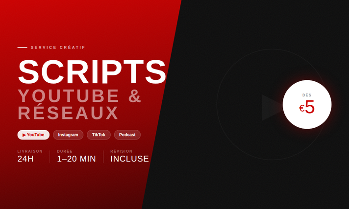 Je vais vais rédiger votre script YouTube ou réseaux sociaux engageant et optimisé
