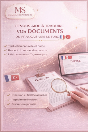 Je vais Traduire vos documents du français vers le turc