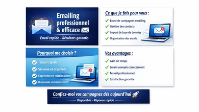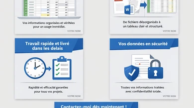 Bonjour 👋 Vous cherchez une personne sérieuse et appliquée pour vos travaux de saisie ou de rédaction ? Je suis Olivia, spécialisée en : • Saisie de données • Rédaction 🎯 Mon objectif : vous fournir un travail clair, structuré et sans erreur, livré dans les délais. ✍️ Saisie de données – Saisie rapide et précise – Copie PDF vers Word – Copie PDF vers Excel – Mise en page professionnelle – Organisation des informations 📝 Rédaction – Rédaction d’articles simples – Rédaction administrative – Reformulation de textes – Correction de fautes – Mise en forme professionnelle Je veille à la clarté, à la cohérence et à la qualité de chaque texte. 🚀 Pourquoi me choisir ? ✔ Travail soigné ✔ Respect des délais ✔ Sérieuse et organisée ✔ Communication rapide ✔ Satisfaction client prioritaire 💰 Offre de base : 10€ Pour 10€, je réalise une prestation définie ensemble selon votre besoin (volume précis à définir avant validation). Des options sont disponibles selon la quantité de travail.