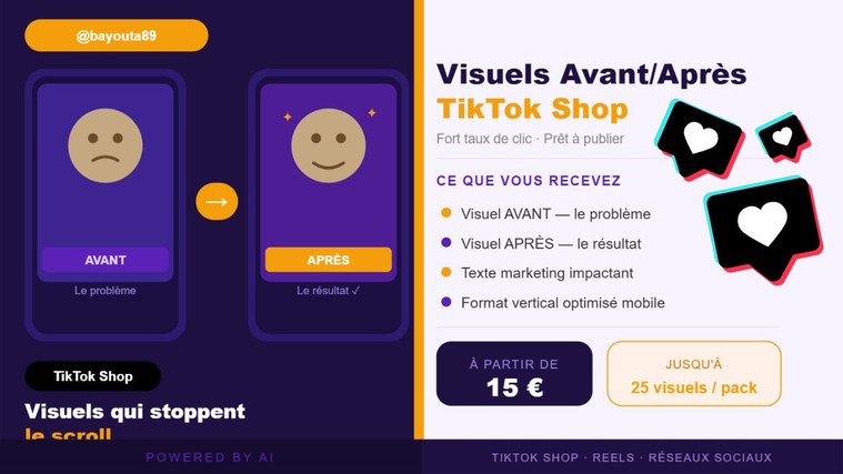 Je vais crée vos Visuels Avant/Après accrocheurs pour TikTok Shop boostez vos clics et vos ventes