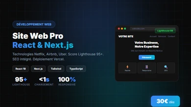 Developpeur full-stack et specialiste IA base a Lyon. Je cree des sites web modernes et rapides avec Next.js et React, des agents IA qui automatisent votre business (emails, devis, support client), des bots Discord et Telegram sur mesure, et des landing pages qui convertissent. Mon stack : Next.js, React, TypeScript, Python, Tailwind CSS, Supabase, Claude AI, OpenAI. Deja livre : sites vitrines pour PME, plateforme SaaS d'automatisation IA, site d'agence, bots Discord. Reponse rapide. Livraison dans les delais. Code propre et maintenable.