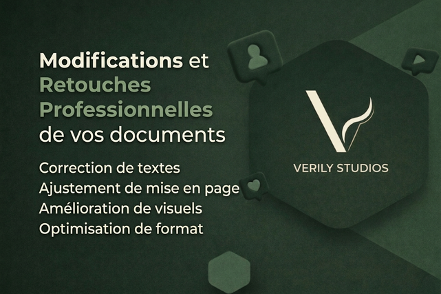 Chez VERILY STUDIOS, nous transformons vos documents en versions claires, propres et professionnelles, prêtes à être utilisées dans un cadre personnel ou professionnel.