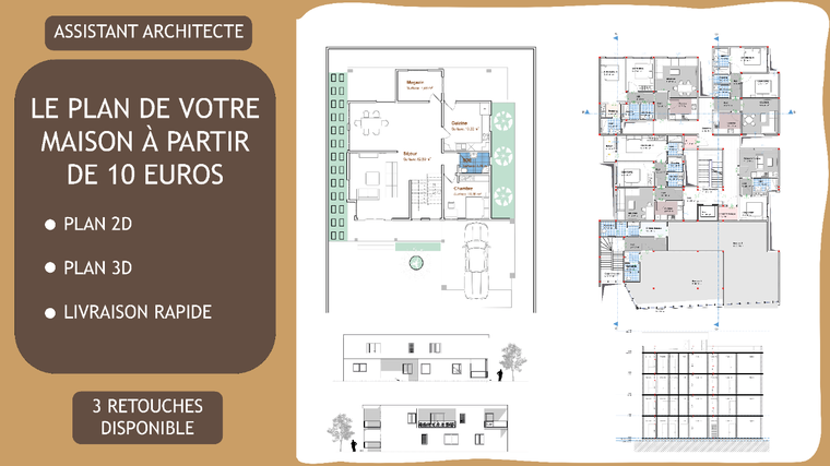 Plus, de 3 ans d'experiences , j’accompagne particuliers et professionnels dans la concrétisation de leurs projets à travers la production de plans et de visuels architecturaux, de l’esquisse jusqu’à la représentation finale. 🎯Ma mission: Fournir des plans clairs, précis et exploitables, ainsi que des rendus réalistes permettant de mieux comprendre le projet et de faciliter la prise de décision. ✅ Mes services: Réalisation de plans architecturaux 2D (plans, coupes, façades) Modélisation 3D et rendus visuels réalistes Optimisation de l’organisation des espaces Respect des bases techniques, des proportions et des normes Suivi sérieux avec une communication claire Grace à ma formation et à ma pratique, je propose des solutions cohérentes, fonctionnelles et adaptées à vos besoins, dans une démarche professionnelle et rigoureuse. 🤝 Pourquoi me faire confiance ? ✔️Diplômé en architecture ✔️ Maîtrise des outils de conception 2D et 3D ✔️ Travail sérieux, rigoureux et appliqué ✔️ Respect des consignes et des délais ✔️ Disponible et à l’écoute tout au long du projet Que vous soyez un particulier ou un professionnel (architecte, décorateur, agent immobilier), je m’adapte à vos besoins pour vous proposer un travail clair, soigné et fonctionnel.