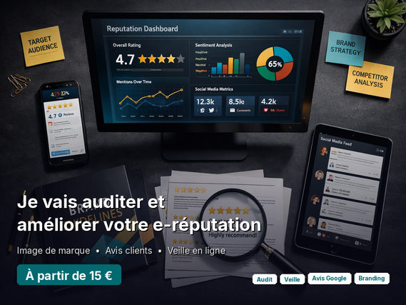 Je vais auditer et améliorer votre e-réputation et image de marque en ligne