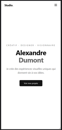 Ce site est moderne, responsive (adapté mobile et ordinateur) et entièrement fonctionnel. Il convient parfaitement pour lancer rapidement une présence en ligne pour un portfolio.