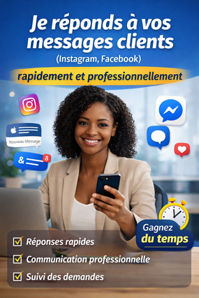 Bonjour, Je propose un service de community management à distance pour aider les entreprises et entrepreneurs à gérer leurs réseaux sociaux efficacement. Je peux m’occuper de : Répondre aux messages et commentaires Publier du contenu régulièrement Améliorer la relation avec vos clients Gérer votre présence sur Instagram / Facebook / LinkedIn / Tiktok Je suis sérieuse, réactive et disponible immédiatement. Objectif : vous faire gagner du temps et améliorer votre image en ligne. N'hésitez pas à me contacter pour une collaboration simple et efficace.