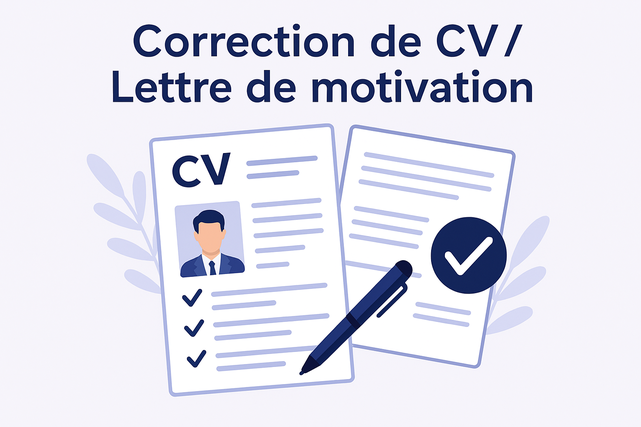 Je corrige votre CV et votre lettre de motivation pour éliminer toutes les fautes d’orthographe, de grammaire et de syntaxe. ✔ Correction complète (orthographe, grammaire, conjugaison) ✔ Amélioration de la lisibilité ✔ Correction rapide et soignée Je travaille avec sérieux et confidentialité.