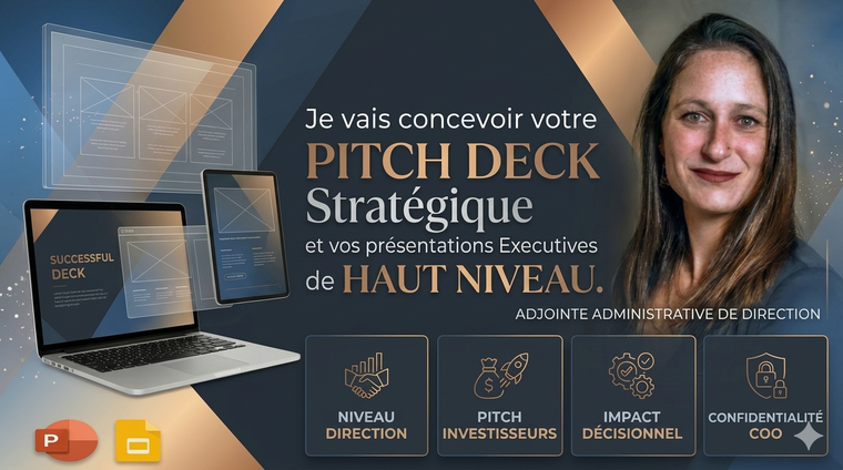 Dans le monde des affaires, une slide surchargée ou un design amateur est une opportunité manquée. En tant qu'adjointe administrative de direction (COO), je traite quotidiennement des dossiers stratégiques. Je sais ce que les décideurs, les investisseurs et les partenaires attendent : de la clarté, une structure logique et un impact visuel immédiat.