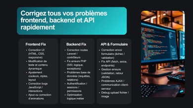 Je suis développeur web spécialisé en PHP et Laravel, avec une expérience dans la création d’applications sur mesure (systèmes de réservation, plateformes de formation, chat en temps réel, dashboards admin…).