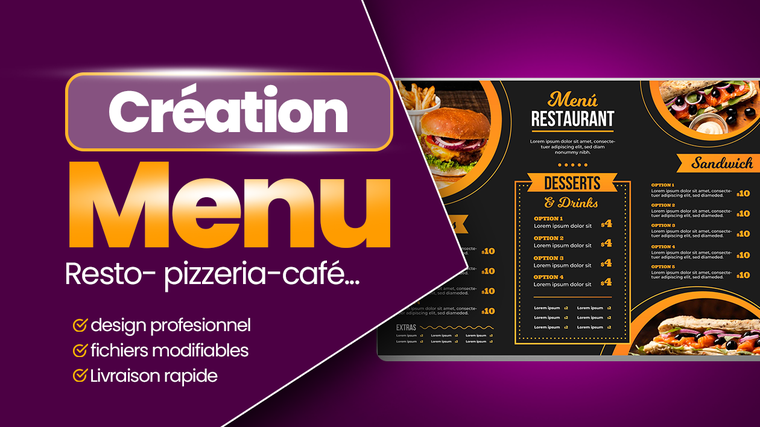 Je vais créer votre menu de restaurant ou menu pizzeria, café, snack