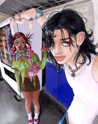 Je m’appelle Malika ou Solvrium (ce lit Solarium) et je suis une artiste née et grandie à Bruxelles. J’ai commencé le dessin en maternelle lorsque ma professeure pointa à mon père que j’était bonne au dessin, il m’acheta du matériel de dessin et m’encouragea à améliorer mon art jusqu’à aujourd’hui. J’ai toujours été intéressée par l’apprentissage de différents médiums, bien que principalement axé sur l’illustration digitale et traditionnelle, je créée des personnages 3D depuis 2019. Je suis inspirée par le maquillage et la coiffure éditorial, ainsi que l’éthéré, le mystérieux et le fantastique. Mon travail représente souvent une tension entre la beauté, l’extravagance ainsi que d’autre éléments perturbants, laissant le spectateur émerveillé. Ma carrière est principalement axée sur le jeux vidéo, en effet de 2020 à 2023 je travaillait pour une compagnie de jeux vidéo allemande. J’ai également effectué quelques projets en free-lance comme une campagne sur la représentation des cheveux Afro dans les jeux vidéo pour Dove.