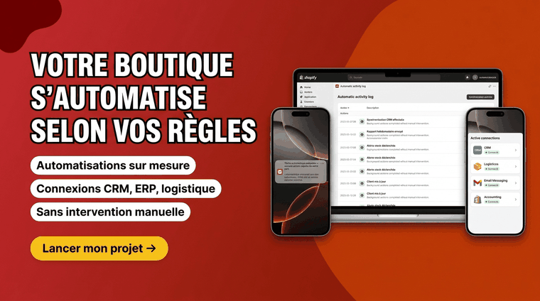 Les applications disponibles sur le Shopify App Store couvrent des besoins génériques. Elles sont conçues pour fonctionner pour un maximum de boutiques, ce qui veut dire qu'elles ne s'adaptent pleinement à aucune.