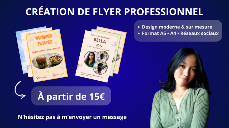 Je vous propose un service de création de flyers modernes, attractifs et entièrement personnalisés selon vos besoins.
