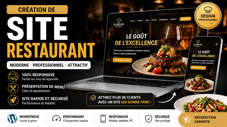 Je vous propose de créer un site web professionnel, facile à utiliser et adapté à tous les appareils (ordinateur, tablette, mobile) pour votre restaurant afin d'augmenter votre visibilité et vos ventes.
