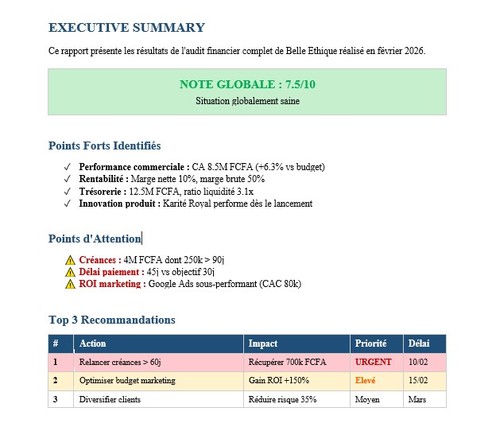 ✓ Rapport d'audit professionnel 15-20 pages (Word + PDF)