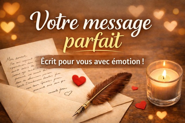 Je vais écrire pour VOUS. Que ce soit en amour, en amitié ou pour des excuses, je vous aide à trouver les mots justes. Chaque message sera rédigé sans faute, sans IA et avec le cœur afin de créer l'impact que vous souhaitez.
