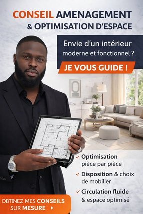 Professionnel en génie civil et en conception architecturale, je vous donne des conseils complet d'aménagement intérieur, pensé pour le contexte local, avec des solutions adaptées à votre climat, votre culture et votre budget. Je m'occupe de tout.