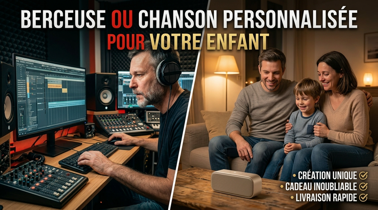 Vous cherchez un cadeau original pour une naissance, un baptême ou un anniversaire ? Vous voulez offrir un souvenir musical que votre enfant gardera toute sa vie ? Je compose une berceuse personnalisée, douce et apaisante, avec son prénom, une petite histoire ou des paroles tendres.