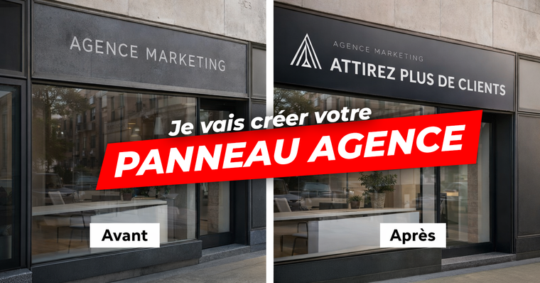 Je crée un panneau d’agence optimisé pour capter l’attention et marquer les esprits :