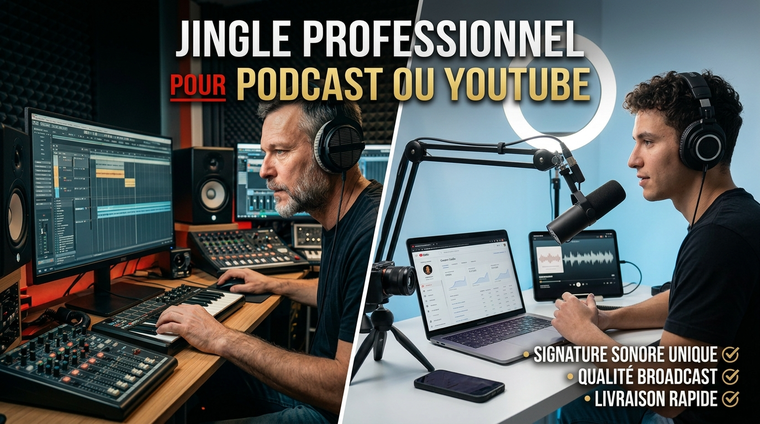 jingle podcast, musique intro YouTube, identité sonore, générique sur mesure, habillage audio