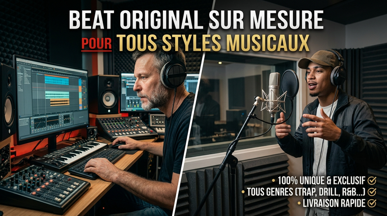 Vous êtes rappeur, chanteur, ou créateur de contenu ? Vous cherchez une instrumentale unique, qui ne ressemble à aucune autre ? Je compose pour vous un beat personnalisé, adapté à votre univers, votre flow et votre émotion.
