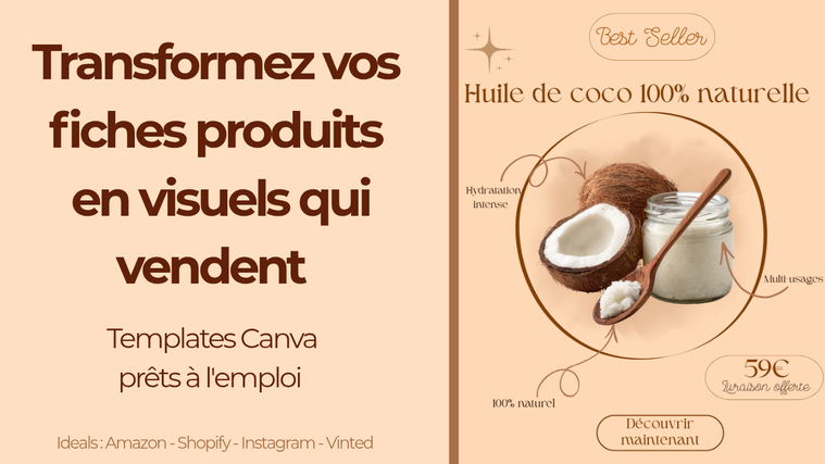 Avec ces templates Canva, vous transformez vos fiches produits en visuels professionnels, en quelques minutes.