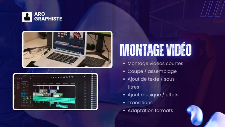 Proposé par Aro_Graphiste •⭐ Je vais gérer votre graphisme, montage vidéo, saisie et assistance digitale complète Vente au total 0