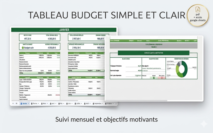 Reprenez le contrôle de votre budget… simplement Comme beaucoup de personnes, j’ai longtemps eu l’impression que mon argent disparaissait sans vraiment savoir où il partait. J’ai testé plusieurs méthodes… sans jamais réussir à m’y tenir sur la durée. Jusqu’au jour où j’ai créé mon propre système. Aujourd’hui, gérer mon budget est devenu : clair structuré motivant et même agréable Je prends plaisir à voir mes objectifs avancer, mes dépenses maîtrisées et mon épargne progresser mois après mois. Ce que je vous propose Je vous propose un système simple et visuel sur Google Sheets qui vous permet de : suivre chaque euro facilement visualiser vos dépenses en un coup d’œil atteindre vos objectifs d’épargne garder une vision claire et sereine de votre budget Mon objectif Vous aider à : reprendre le contrôle vous sentir serein avec votre argent et enfin tenir votre budget sur la durée Pourquoi moi ? Je ne vous propose pas un simple tableau. Je vous propose une méthode que j’utilise moi-même, pensée pour être simple, claire et motivante au quotidien.