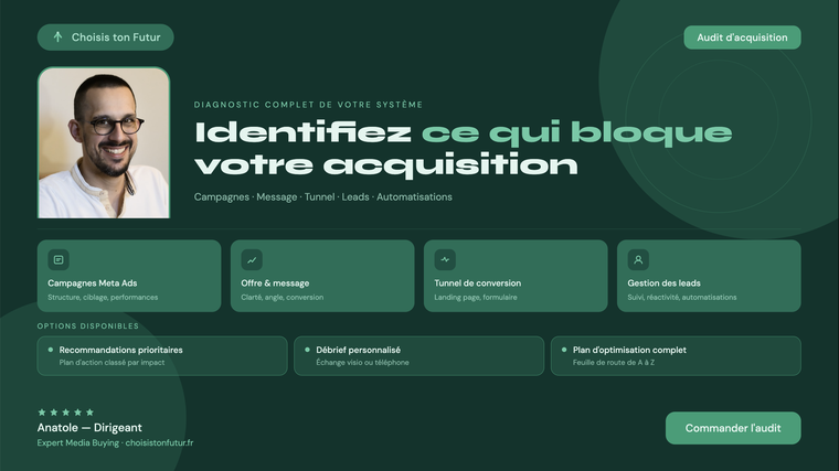 🎯 Ce que je vous propose : un audit complet et structuré de votre acquisition