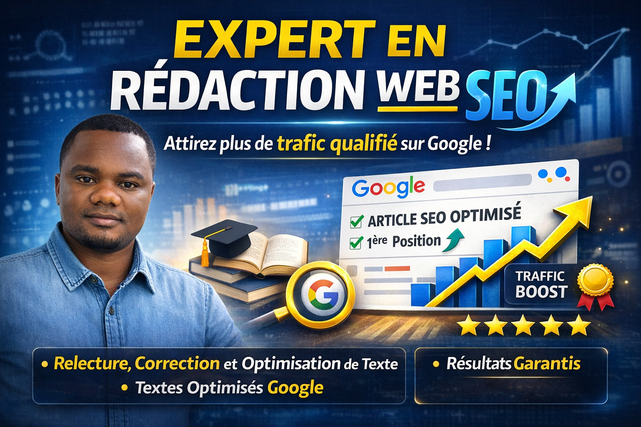 Vous avez besoin de contenus qui attirent du trafic et convainquent vos visiteurs d'agir. Je suis là pour ça. Chaque jour, des milliers de sites publient des articles mal structurés, bourrés de mots-clés sans âme, qui ne rankent jamais — et ne vendent rien. Ce n'est pas ce que vous aurez avec moi. Rédacteur web SEO confirmé, j'écris des contenus pensés pour Google et pour vos lecteurs. Résultat : un trafic qui monte, une audience qui reste, et des visiteurs qui passent à l'action. Ce que vous obtenez concrètement : ✅ Textes 100% uniques, vérifiés anti-plagiat (Copyscape) — aucun risque de pénalité Google ✅ Optimisation SEO on-page complète : structure Hn, intention de recherche, maillage interne, densité de mots-clés ✅ Livraison en 24 à 48h — vos projets avancent sans attendre ✅ Révisions illimitées — vous êtes satisfait, ou on retravaille. Sans discussion. ✅ Expertise prouvée dans 4 secteurs exigeants : Santé & bien-être · E-commerce · Finance & business · Immobilier Pour qui je travaille ? Pour les entrepreneurs, PME, agences et créateurs de contenu francophones qui veulent des textes qui font vraiment le travail — pas juste remplir une page. Comment ça se passe ? Vous passez commande ou vous m'envoyez un message avec votre brief J'analyse votre sujet, votre cible et vos mots-clés Vous recevez un contenu structuré, optimisé et prêt à publier Pas de mauvaises surprises. Pas de délais non respectés. Juste du contenu qui performe. 🚀 Votre prochain article SEO est à un clic. Passez commande maintenant — je m'occupe du reste.