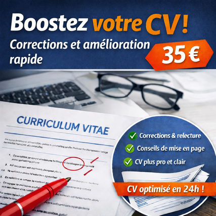 Je vous aide à identifier précisément ce qui bloque (contenu, structure, lisibilité) et à améliorer votre CV grâce à des conseils clairs et personnalisés, afin qu’il mette réellement en valeur votre profil et augmente vos chances d’être contacté(e).