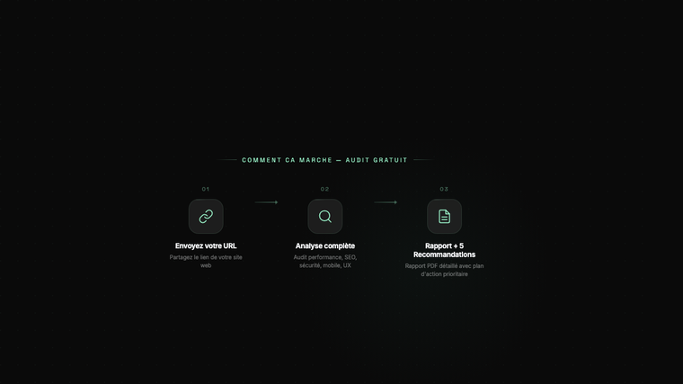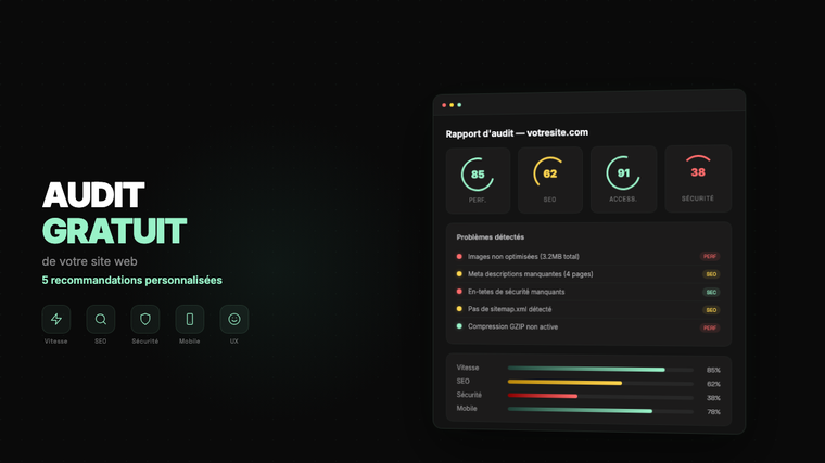 Vous vous demandez pourquoi votre site ne convertit pas, ne remonte pas sur Google, ou semble lent ? Je vais analyser votre site en profondeur et vous livrer un rapport clair avec 5 recommandations actionnables.