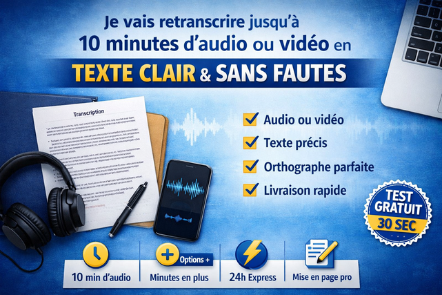 Je vais retranscrire votre audio ou vidéo en texte clair, rapide et sans fautes