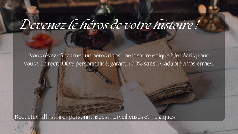Vous rêvez d'un cadeau unique ? D'être le héros ou l'héroïne d'une histoire 100% personnalisée ? Autrice, je me propose de le créer pour vous !