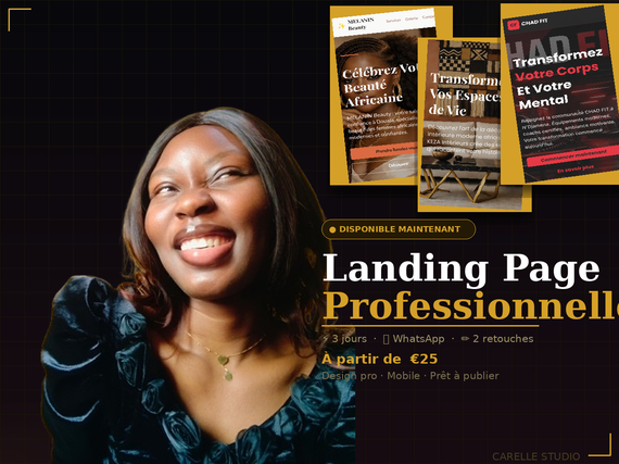 Proposé par CarelleOREMTAMASRA •Créatrice de landing pages professionnelles pour entrepreneurs et petites entreprises Vente au total 0