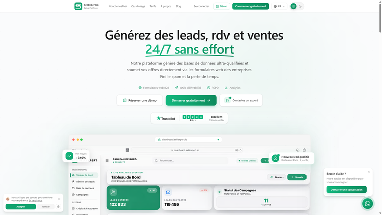 Mon SaaS SellExpert.io utilise exactement ces techniques : 500+ clients actifs, +340% de résultats, ~8,22 $US par lead, note 4.9/5 sur Trustpilot.