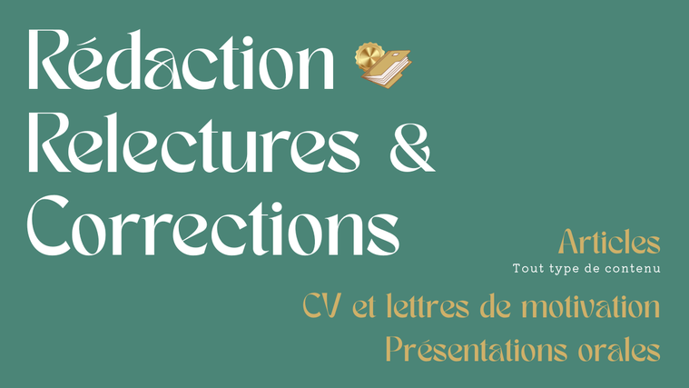 Ayant une expérience multidisciplinaire dans l'écriture, allant de la production littéraire à la vulgarisation scientifique, je propose plusieurs services autour de la production écrite et/ou visuelle. Je suis ouverte à tout type de demande pour tout type de contenu. N'hésitez pas à me contacter pour adapter votre projet !