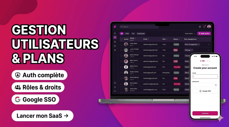Pour les fondateurs qui veulent un produit SaaS professionnel, multi-plans, avec tout ce qu'il faut pour acquérir, facturer et retenir des clients à grande échelle.