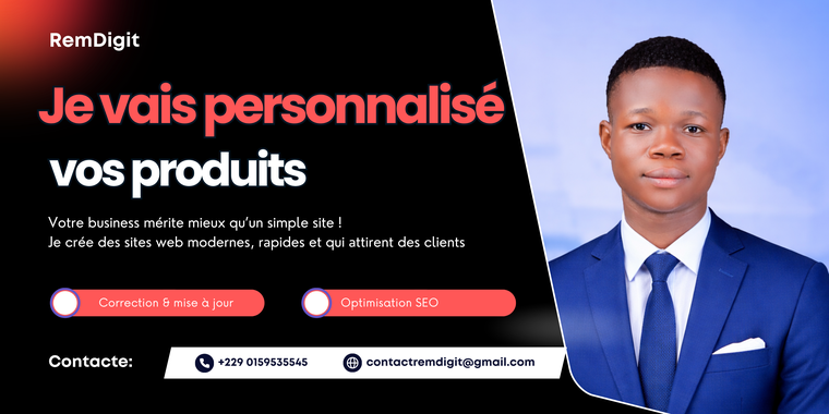 Je suis développeur web expert SEO, spécialisé dans la création et l'optimisation de sites web performants. Je vous aide à : Créer des sites WordPress modernes, responsives et sur mesure (vitrine, blog, e-commerce avec WooCommerce) Optimiser votre référencement naturel (SEO on-page, technique, vitesse, Core Web Vitals) Accélérer votre site pour un meilleur ranking Google et une expérience utilisateur fluide Passionné par le digital, je livre des projets propres, sécurisés et prêts à scaler. Contactez-moi pour transformer votre idée en site qui convertit vraiment !
