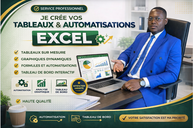 Je vais créer vos tableaux Excel professionnels, automatisations et tableaux de bord sur mesure
