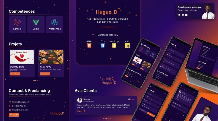 Chez Huguo_Dev, je me spécialise dans la création de sites internet haute performance. J'utilise les meilleures technologies actuelles (WordPress pour la simplicité ou TailwindCSS pour la vitesse extrême) pour garantir une expérience utilisateur fluide et un design qui convertit vos visiteurs en clients.