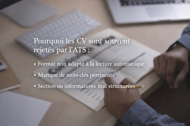 Beaucoup ne savent pas mais, quand vous postulez en ligne sur LinkedIn, Indeed, ou le site d'une entreprise, ton CV passe d'abord par un ATS ( Applicant Tracking System ). Ce robot, scanne, lit et note ton CV. Si ton score est trop bas → ton CV est rejeté automatiquement, sans que personne ne le lise ! !