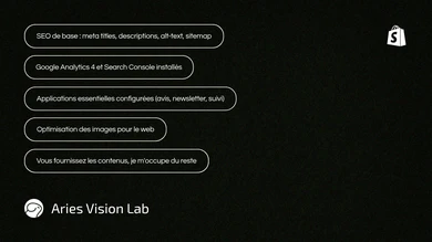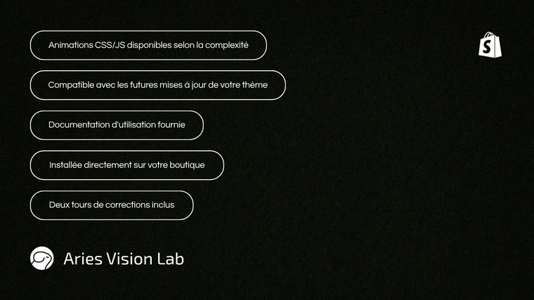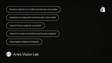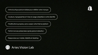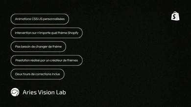 Créateur du thème Shopify premium Aries. Plus d'informations → Aries Vision Lab(https://www.ariesvisionlab.com/) 3+ ans d'expérience en développement web, spécialisé en développement Shopify. J'aide les entrepreneurs et les marques à avoir une boutique en ligne professionnelle, rapide et pensée pour convertir. Ce que je vous propose 🛍️ Boutiques Shopify clé en main Du choix du thème jusqu'au lancement : produits, paiements, livraison, emails transactionnels, SEO. Vous recevez une boutique prête a vendre + une formation pour la gérer. 🎨 Personnalisation de thèmes Votre thème actuel ne vous ressemble pas ? Je le transforme : design, sections, mise en page, animations. Code propre et maintenable. 🧩 Sections Liquid sur mesure Bento Grid, carrousel de produits, carte interactive, section before/after, grille de collections, bandeau défilant, pop-up promotionnelle, tableau comparatif... Je crée des sections 100% paramétrables depuis l'éditeur Shopify. 📱 Applications Shopify custom Besoin d'une fonctionnalité spécifique ? Je développe des apps Shopify sur mesure. 🔧 Maintenance & optimisation Mises a jour, bugs, performances, sécurité. Packs mensuels ou interventions ponctuelles. ✅ Ce qui me différencie ↳ Créateur d'un thème complet de A a Z. Pas un template modifié : un vrai thème avec 40+ sections, 15+ outils pour booster vos ventes, 3 différents presets, une documentation complète. ↳ Maitrise de l'architecture Shopify en profondeur (Liquid, Javascript, Typescript, React Router, Shopify functions, Polaris, Admin & Checkout extensions, les différentes API, les Theme Blocks, Metafields & Metaobjects, GraphQL, Shopify CLI). ↳ Communication claire, livrables propres, respect des délais. 📩 Écrivez moi pour un échange rapide sur votre projet.