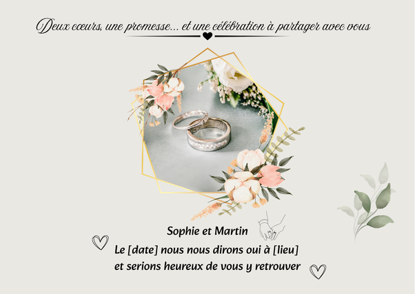 Je crée pour vous une invitation de mariage unique, moderne et romantique, entièrement personnalisable sur Canva.