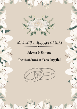 Je vais vous créer une invitation pour votre mariage unique et personnalisée avec le thème de votre choix