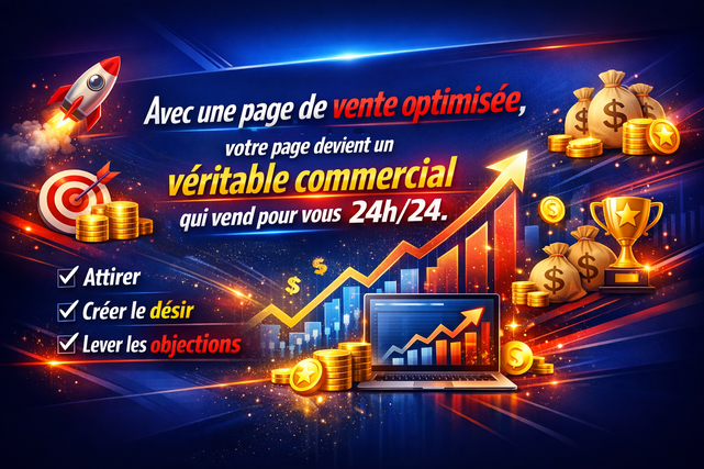 Avec une page de vente optimisée, votre page devient un véritable commercial qui vend pour vous 24h/24.