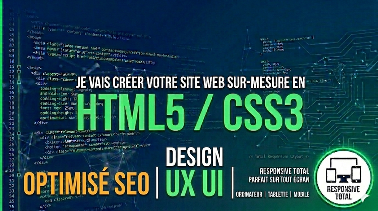 Une fois la commande passée, vous devrez me fournir votre logo, vos préférences de couleurs et vos contenus comme les textes et les images. Je développerai votre site proprement en HTML5 et CSS3. Pour le format de livraison, vous recevrez un dossier compressé contenant tous les fichiers sources du site (fichiers HTML, feuilles de style CSS et images) prêts à être mis sur votre serveur.