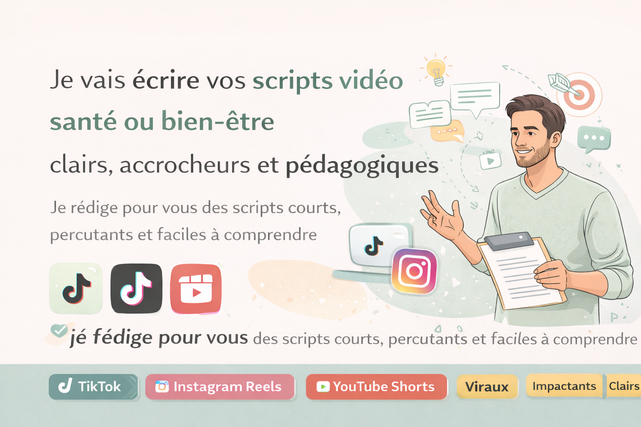 Je vous aide à transformer vos idées en scripts vidéo clairs, dynamiques et pédagogiques, adaptés aux formats courts.